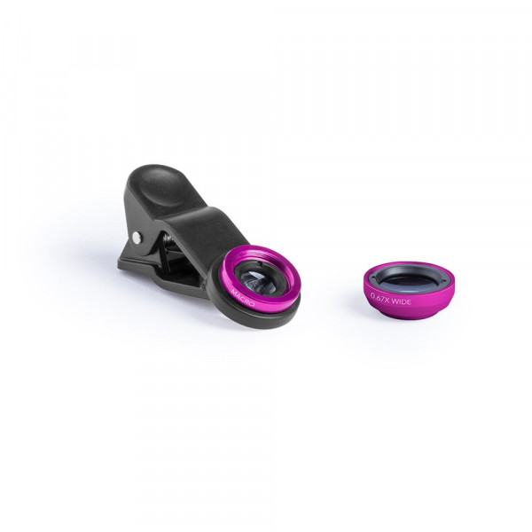 Set aus Universal-Objektiven für Smartphones - mit Clip zum Befestigen. Hergestellt aus Aluminium und Glas. Enthält Makro und Weitwinkel sowie ein Mikrofaser-Reinigungstuch. Objektive werden in einem Samtbeutel mit Kordelzug präsentiert. Set präsentiert in einer attraktiven Designbox.