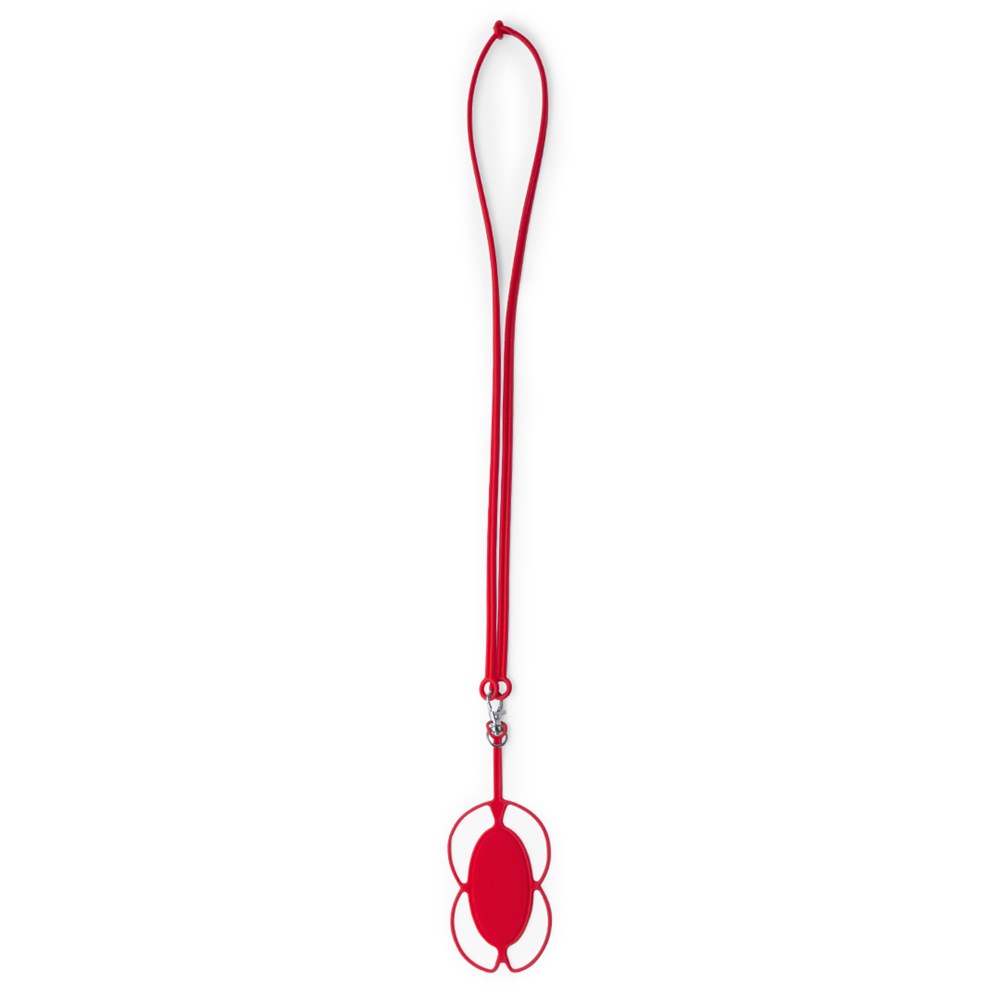 Praktischer und bequemer Silikon-Lanyard in auffälligen Farben mit integriertem Smartphone-Halter. Mit Stopper und Befestigungskarabiner.