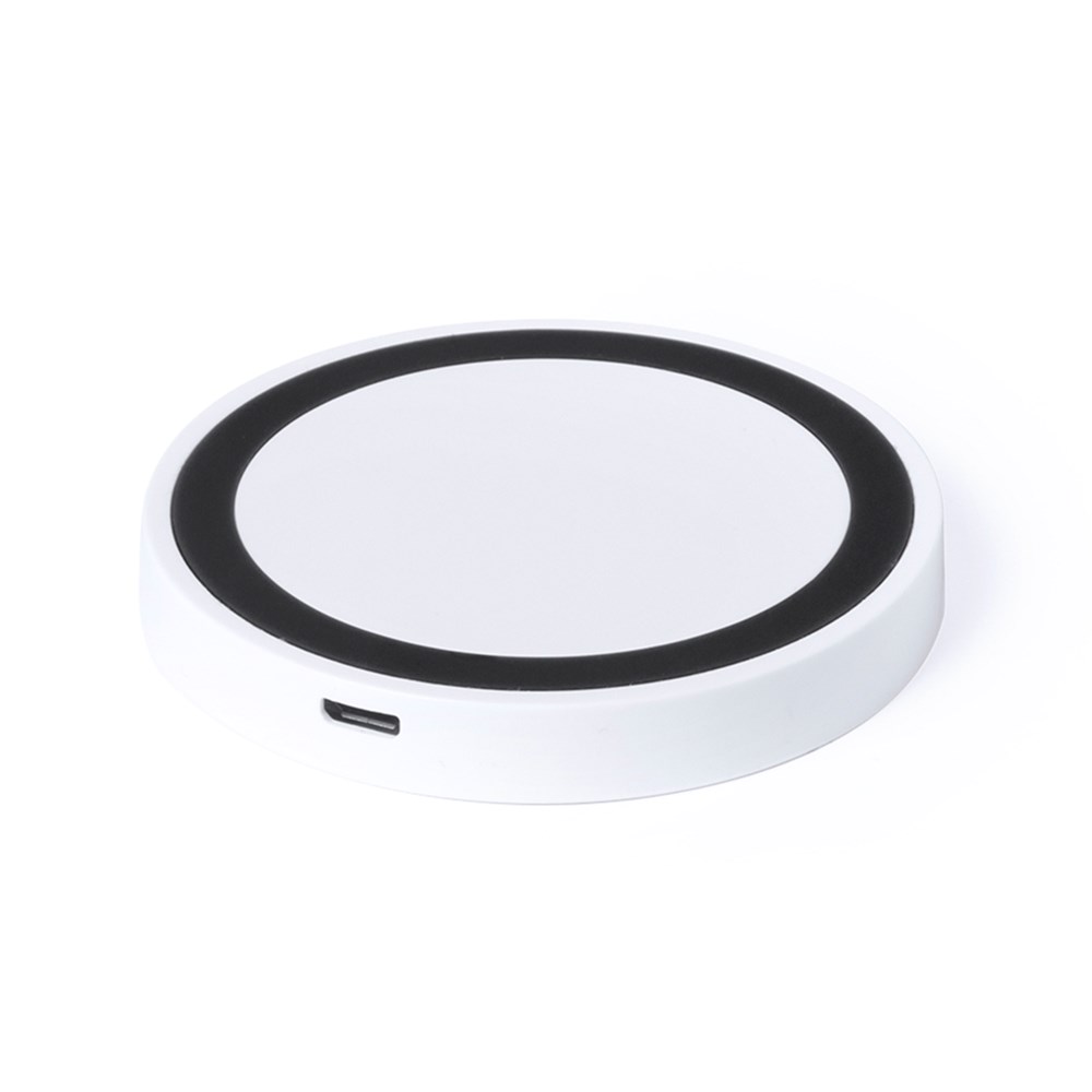 Zweifarbiges, rundes Ladegerät mit QI-Technologie (induktive Energieübertragung). Kabellos und mit rutschfester Unterseite sowie LED-Ladeanzeige. Kompatibel mit Smartphones mit Android-Betriebssystem. Präsentiert in einer attraktiven Designbox.