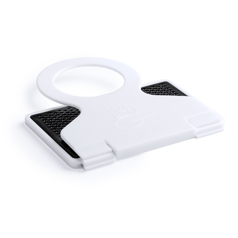 Originelle Mobiltelefon-Halterung zur Anbringung an einer Wandsteckdose. Mit rutschfestem Design in glänzender Ausführung - speziell für den Tampondruck entwickelt.