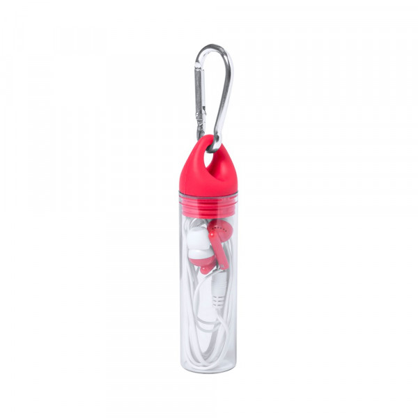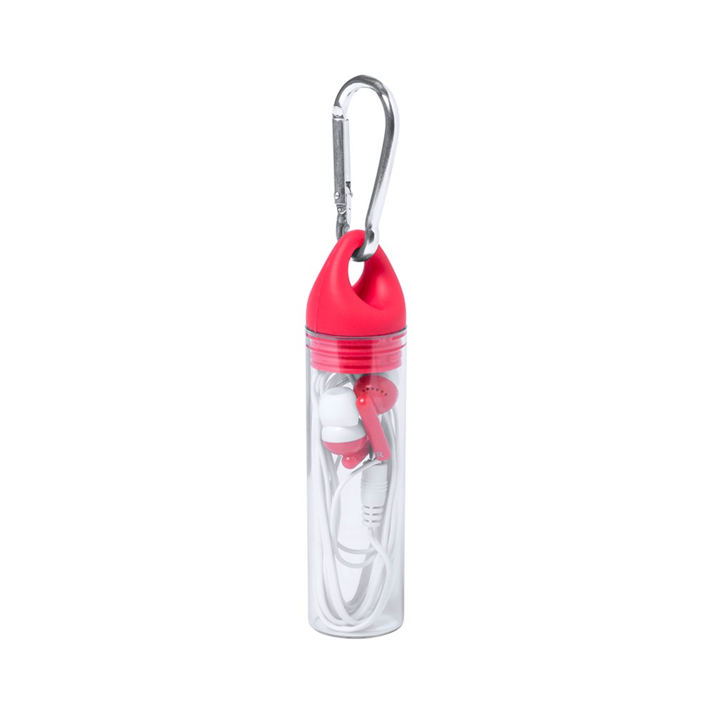 Zweifarbige In-Ear-Kopfhörer mit 3,5-mm-Klinkenstecker und weißem Kabel. Mit Ohrstöpseln in vielen Farben - speziell für den Tampondruck entwickelt. Präsentiert in einem originellen zylinderförmigem Gehäuse in transparenter Ausführung mit Schraubdeckel und Befestigungskarabiner in passender Farbe.