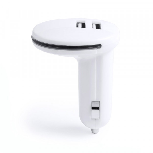 USB-Ladegerät für Auto-Zigarettenanzünder mit einer Ladekapazität von 2.100 mAh und weißem, minimalistischem Design. Mit Dual-USB-Ausgang für das gleichzeitige Laden von zwei Mobilgeräten. Präsentiert in einer individuellen Box.