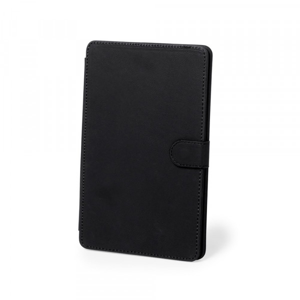 Bluetooth®-Tastatur mit Ständer für Mobilgeräte aus weichem Kunstleder. Mit kompaktem Design in auffälligen Farben, sowie Klappe mit Magnetverschluss und Kartenfächern im Inneren. Aufladbar durch Mini-USB-Kabel (inklusive). Kompatibel mit allen Betriebssystemen. Präsentiert in einer attraktiven Designbox.