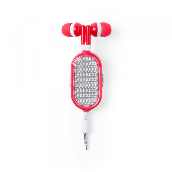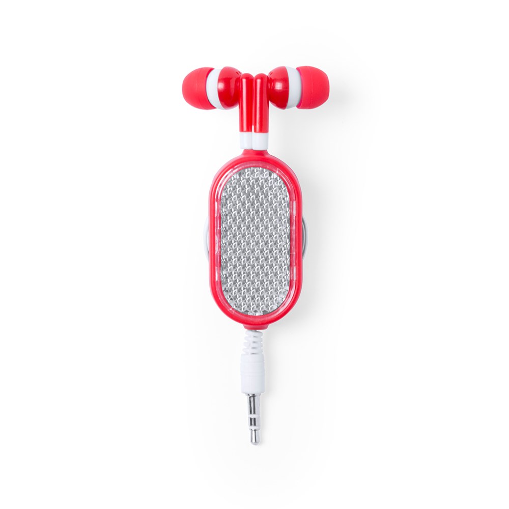 In-Ear-Kopfhörer mit sportlichem Design und reflektierendem Gehäuse in verschiedenen lebendigen Farben. Mit ausziehbarem Kabel und Clip sowie 3,5-mm-Klinkenstecker und Kabel in Weiß.