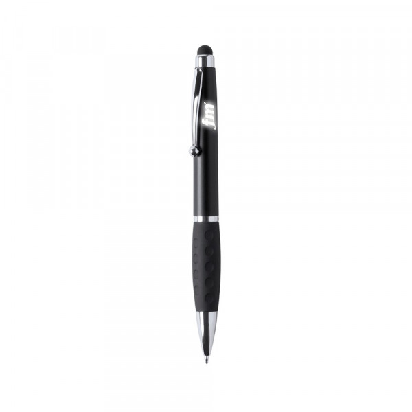 Dreh-Kugelschreiber mit Stylus und LED-Licht im Inneren. Speziell für den Laserdruck entworfener Schaft, durch den das Logo von innen beleuchtet wird. Mit weichem Griff und Schaft in verschiedenen lebendigen Farben. Knopfzellen inklusive. Blaue Tinte.
