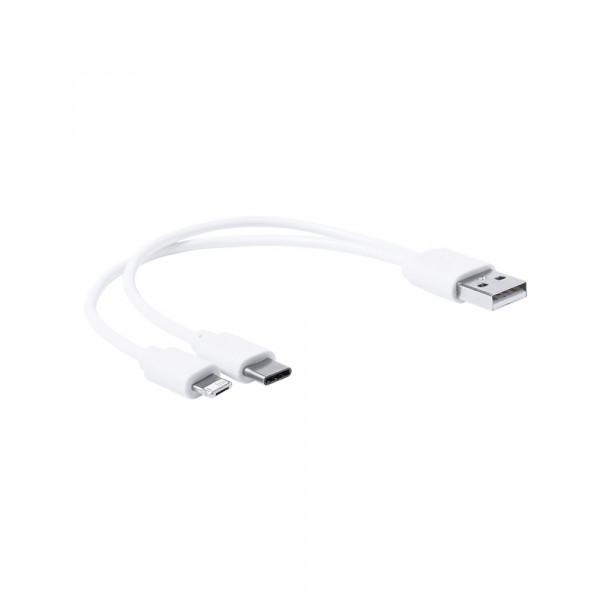 USB-Ladekabel mit USB-C- sowie Micro-USB-/Lightning-Anschluss. Mit minimalistischem Design in Weiß. mehr