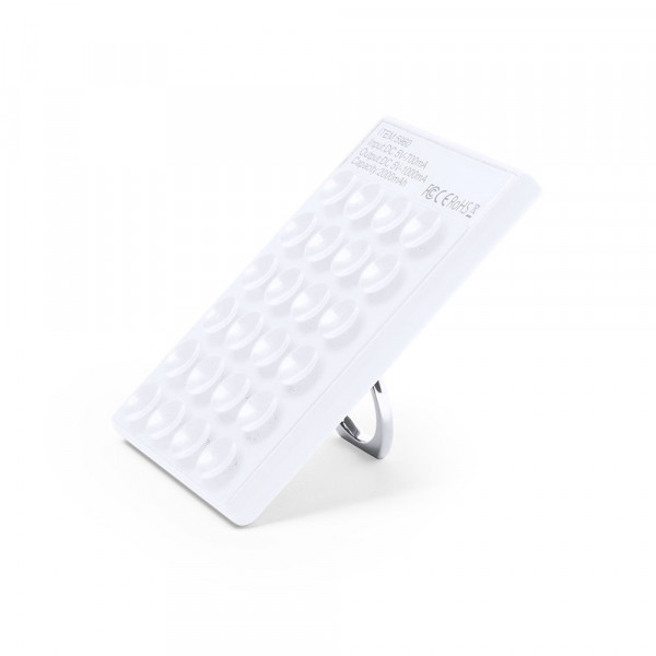 Externer Akku mit 2.000 mAh Ladekapazität. Mit integrierten Saugnäpfen und Ring/Halterung für Selfies. Mit Micro-USB- und USB-Eingang/Ausgang sowie LED-Ladeanzeige. Mit flachem Gehäuse und großer Druckfläche. Präsentiert in einer attraktiven Designbox.