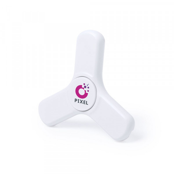 Originelles Anti-Stress-Ladegerät in Weiß. Mit einziehbaren Anschlüssen: Micro USB, USB und USB-C. Mit Druckfläche, die speziell für den Tampondruck entwickelt wurde.