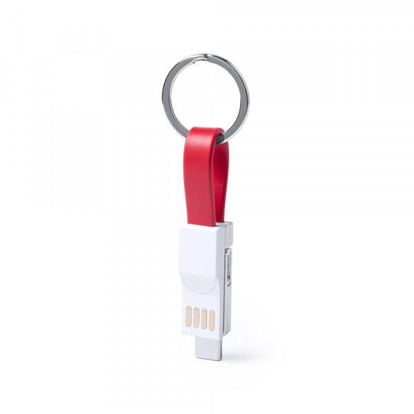 Magnetisches Ladegerät mit Syncronisierungsfunktion und Gehäuse in einer Vielzahl von Farben. Mit USB-C- und dualem Micro-USB-/Lighting-Anschluss. Mit Schlüsselring. Präsentiert in einem attraktiven Designbeutel.