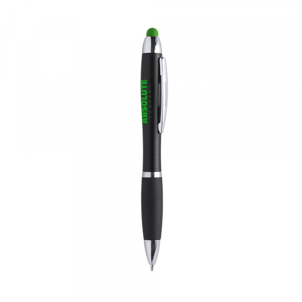 Dreh-Kugelschreiber mit Stylus und LED-Beleuchtung im Inneren in verschiedenen Farben. Mit Gehäuse in Schwarz und Stylus in zur LED-Beleuchtung passenden Farbe. Erhältlich mit LED-Licht in den Farben Gelb, Blau, Weiß, Orange, Rot oder Grün. Speziell für den Laserdruck entworfenes Gehäuse, durch das Ihr Logo von innen in der Farbe beleuchtet wird, die am besten zu Ihrem Logo passt. Knopfzellen inklusive. Blaue Tinte.