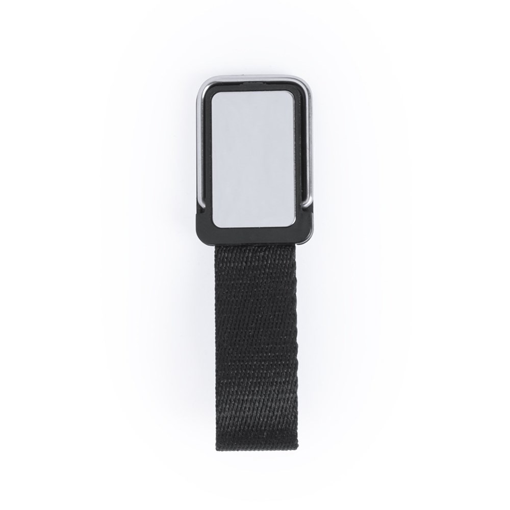 Originelle, selbsthaftende Halterung für Smartphones mit Schlaufe für Selfies aus robustem Polyester. Mit großer Druckfläche und Metallhalter. Präsentiert in einem attraktiven Designbeutel.