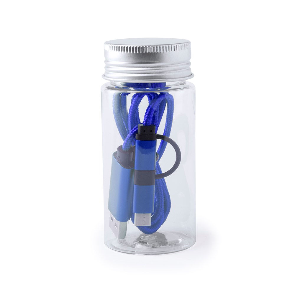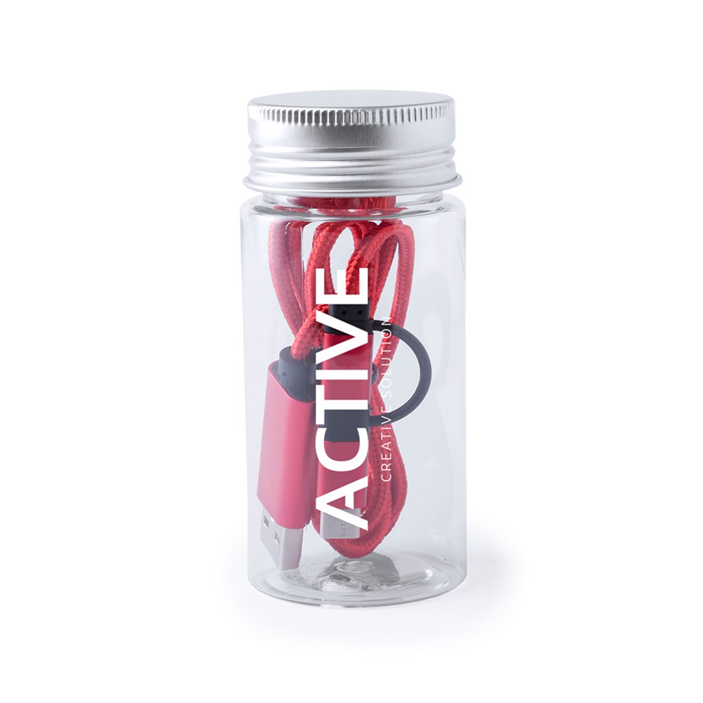 USB-C-Ladekabel mit dualem Micro-USB/Lightning-Anschluss von 100 cm Länge. Mit extra robuster Nylonbeschichtung für intensiven Gebrauch und Aluminiumsteckern - speziell für den Laserdruck entwickelt. Erhältlich in einer Vielzahl von Farben. Präsentiert in einer attraktiven, transparenten Dose mit Schraubverschluss.