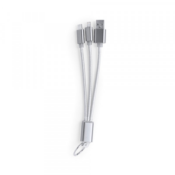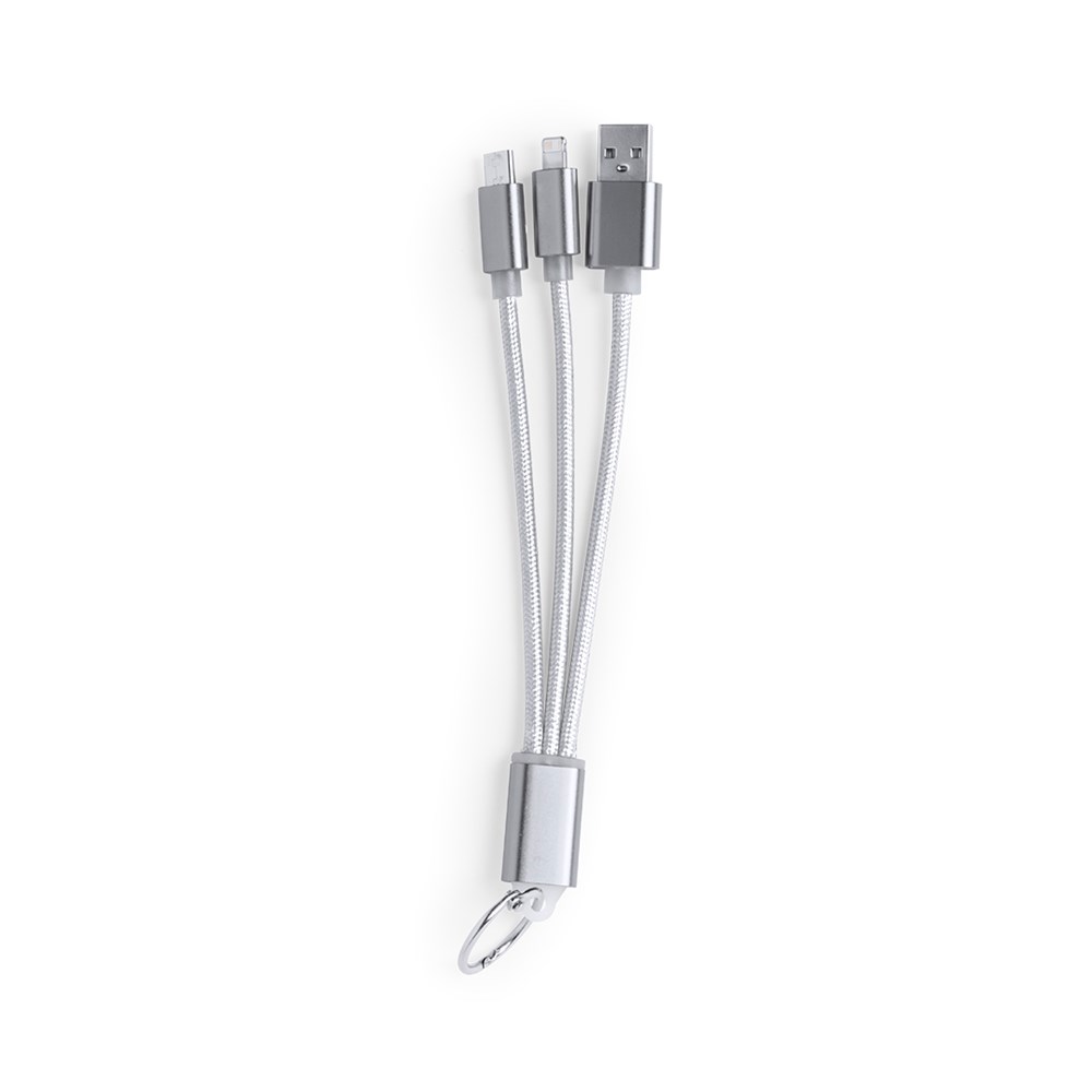 3-in-1 Ladekabel mit USB-C-, Micro-USB-und Lightning-Anschluss. Mit besonders resistenter Nylonbeschichtung für den intensiven Gebrauch und Aluminiumverbindern, die speziell für den Laserdruck entwickelt wurden. Erhältlich in einer Vielzahl von Farben. Mit Schlüsselring.