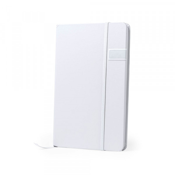 Notizblock mit coolem Design in Weiß. Mit im Cover integriertem USB-Speicher von 16 GB, Gummibandverschluss und Lesezeichenband in passender Farbe. Mit 100 linierten Blättern. Erhältlich in verschiedenen lebendigen Farben.
