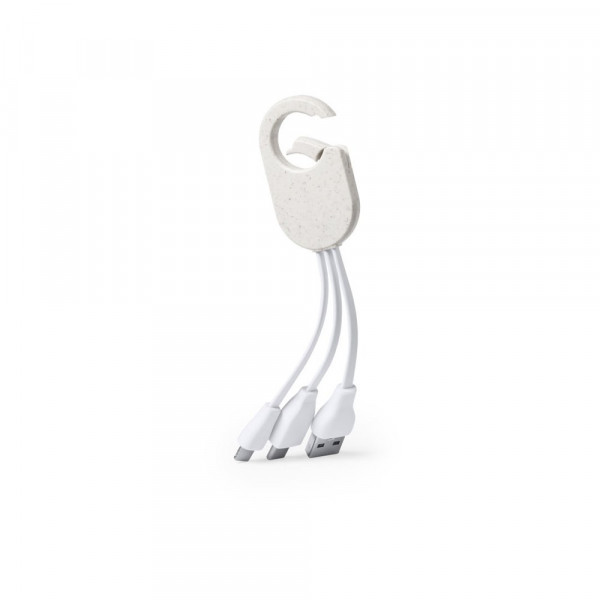 Naturlinie USB-Ladegerät aus Weizenstroh, um die Verwendung natürlicher Rohstoffe zu fördern und Schadstoffemissionen zu reduzieren. Anschlüsse Typ C und Dual-Mikro-USB/Beleuchtung. Mit verstellbarem Karabinerhaken. Präsentiert in einer attraktiven, individuellen Öko-Design-Box.