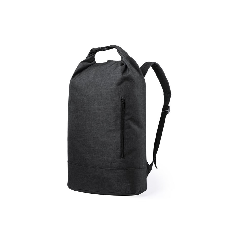 Mehrzweckrucksack aus widerstandsfähigem Zwei-Tonnen-Polyester 300D. Städtisches Design, einschließlich Diebstahlsicherungstasche mit RFID-Sicherheitstechnologie (Radio Frequency Identification), die Kartendaten sicher aufbewahrt. Hauptfach mit Sicherheitsschnallenverschluss und ein gepolstertes Fach für Laptops bis zu 15 Zoll Größe. Verstellbare, gepolsterte Schultergurte.