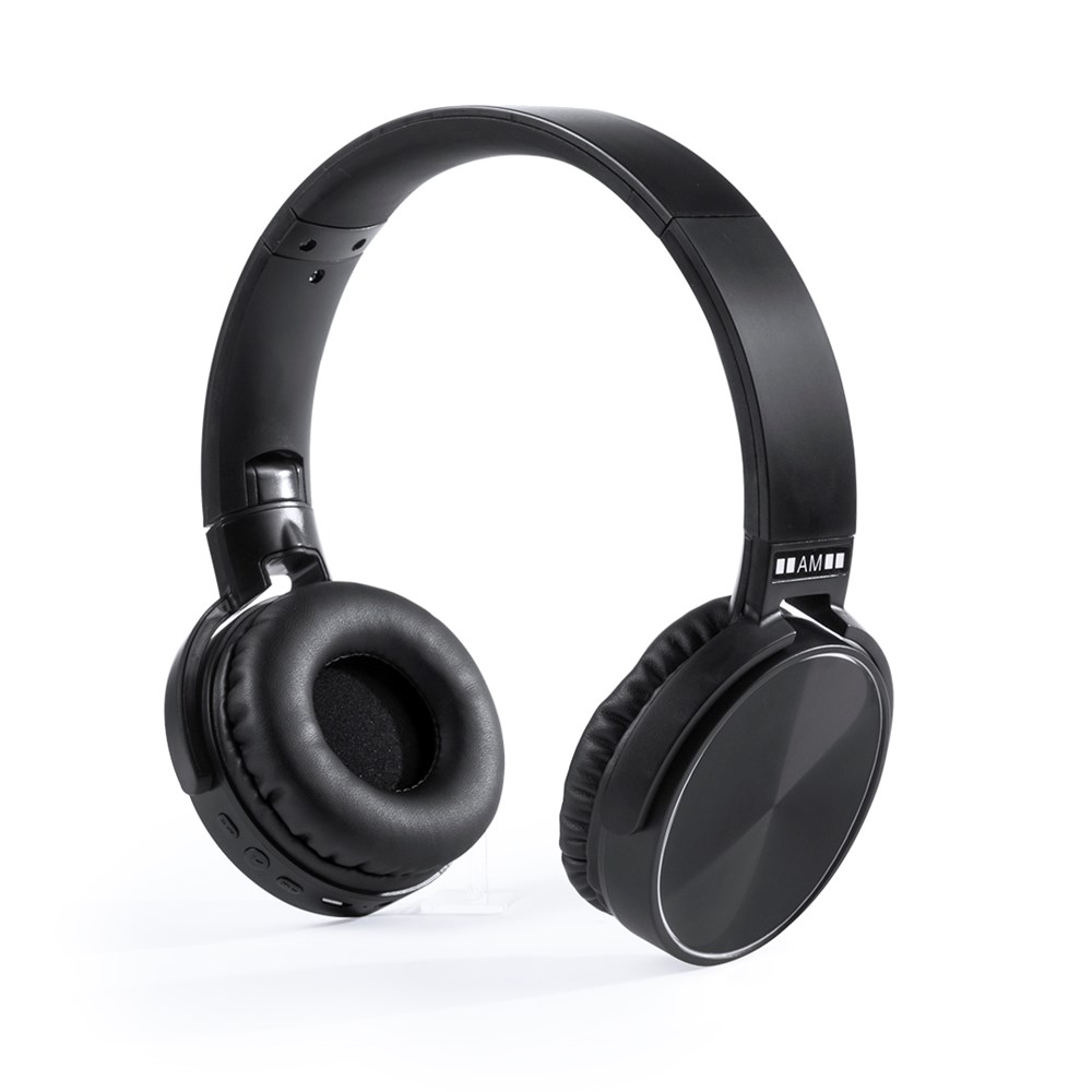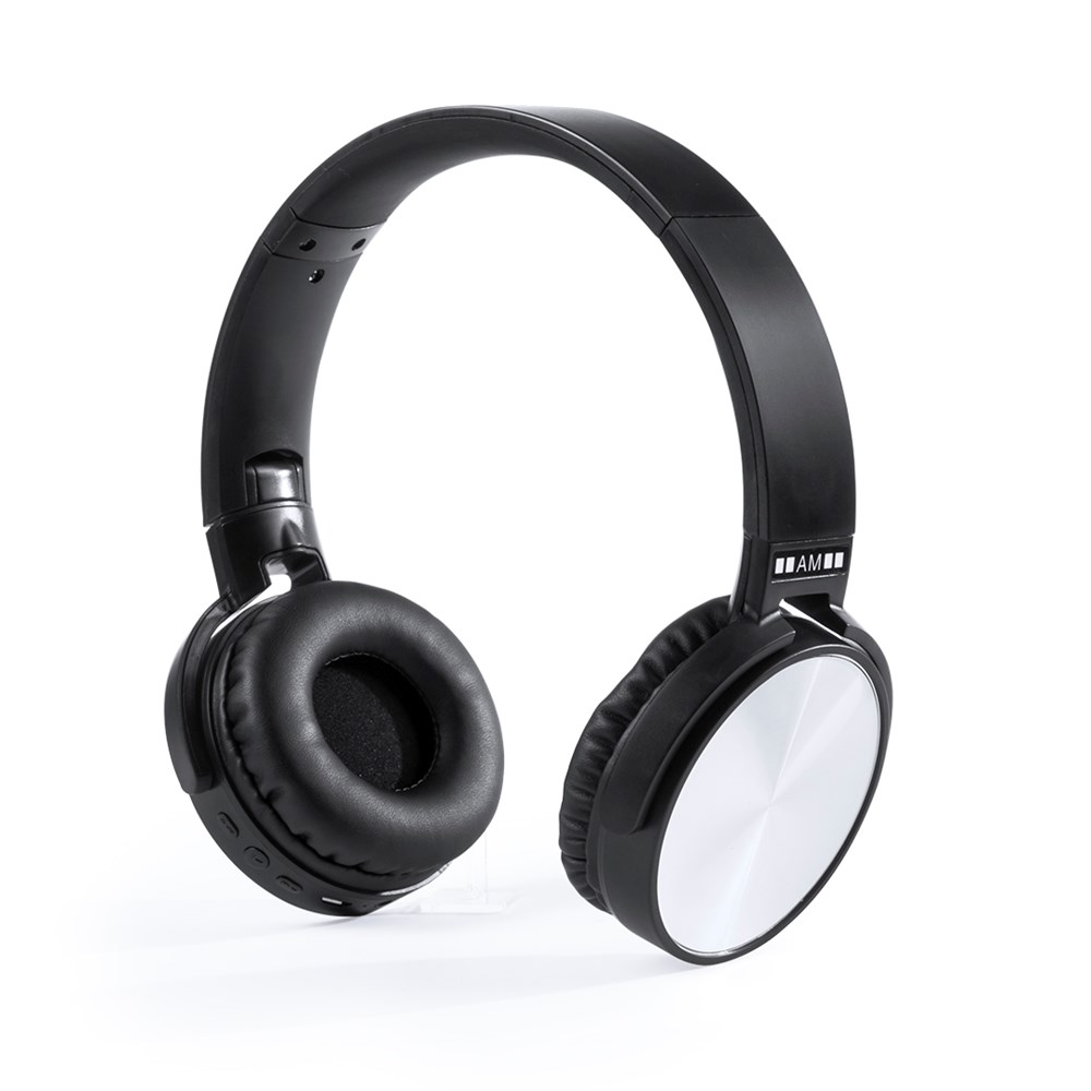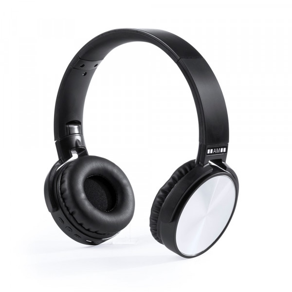 Faltbarer Bluetooth®-Kopfhörer von Antonio Miró. Mit schlichtem, minimalistischem Design in Schwarz/Silber und integriertem Bedienfeld. Mit Bluetooth®-3.0-Anschluss, FM-Radio sowie Freisprechfunktion und Kunstlederpolstern. Präsentiert in einer attraktiven Designbox mit dem Markenlogo.
