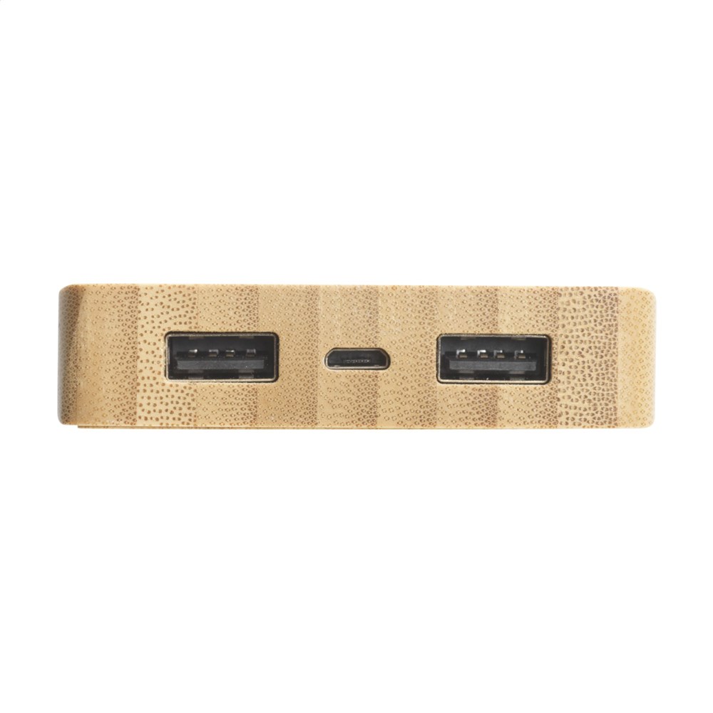 Leistungsstarkes Notladegerät mit hoher Ladekapazitätaus und drahtloses Ladegerät aus natürlichem Bambus. Mit eingebauter Lithium-Polymer-Batterie (8000 mAh). Kann mit Solarenergie oder Netzstrom (über USB-Anschluss) aufgeladen werden. Eingang: 5V/2A. Ausgang: 5V/2A. Inklusive Micro-USB-Ladekabel, LED-Indikatoren und Bedienungsanleitung. Pro Stück in einer Verpackung.