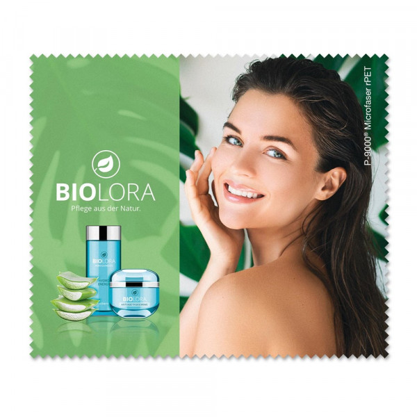 Lästige Fingerabdrücke auf Brillengläsern sind passé mit den rPET Brillentüchern aus recycelter P-9000®-Microfaser. Sie entfernen schnell und gründlich Verschmutzungen, und zwar ohne Reinigungsmittel. Damit sind sie auch für Optiken, Kameras und Displays ideal geeignet. Ihr Motiv, Bild oder Design setzen wir dabei wunschgemäß und perfekt in Szene. Verpackt wird das Microfasertuch im Papieretui, welches eine zusätzliche Werbefläche bietet und das Gesamtpaket abrundet. • Made in Germany • Material: P-9000®-Microfaser rPET (70% recyceltes Polyester | 30% Polyamid) • Qualität: 250g/m2 • Format: 18 x 15 cm • Verpackung: Papieretui mit 4/0 Druck • Anwendungsbereiche: Reinigung von Brillen, Optiken, Displays u.v.m • Waschbar bis 30 °C All-Inclusive-Paket: • incl. 4/0 Druck • incl. Einzelverpackung • incl. Druckvorlaufkosten • incl. Versandkosten (Lieferung frei Haus an eine Adresse in Deutschland auf dem Festland) Express-Service auf Anfrage möglich.