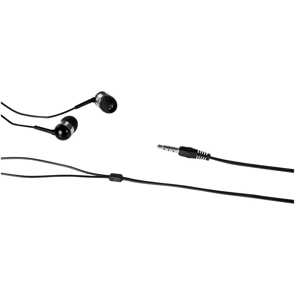 Deluxe-Ohrhörerset mit einem im Kabel integriertem Mikrofon für freihändigen Betrieb Ihres Mediengeräts. Sie können ganz einfach mit einer einzigen Taste am Mikrofon, Anrufe entgegennehmen oder beenden. Mit dem Set werden außerdem drei austauschbare Ohrhörerabdeckungen aus Gummi mitgeliefert. Kunststoffetui mit Kabelaufbewahrung. 3,5 mm Audiokabel, 96 cm langes Ohrhörerkabel.