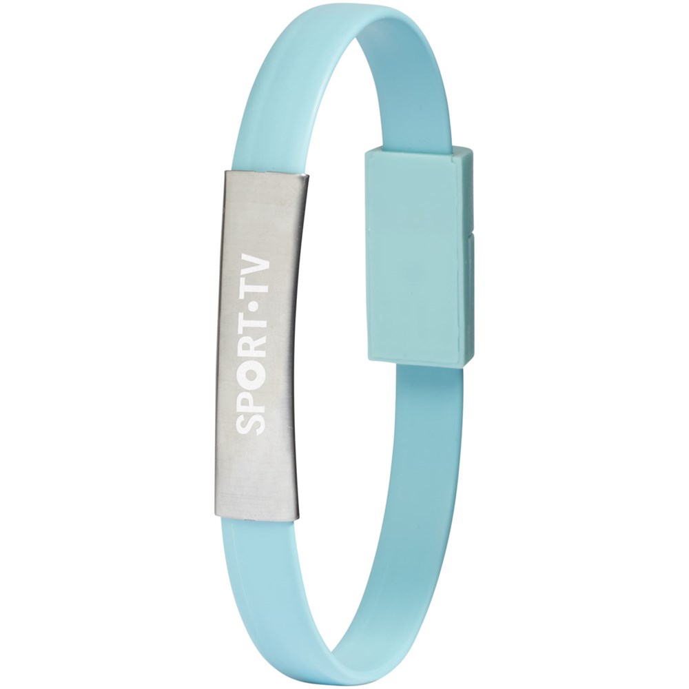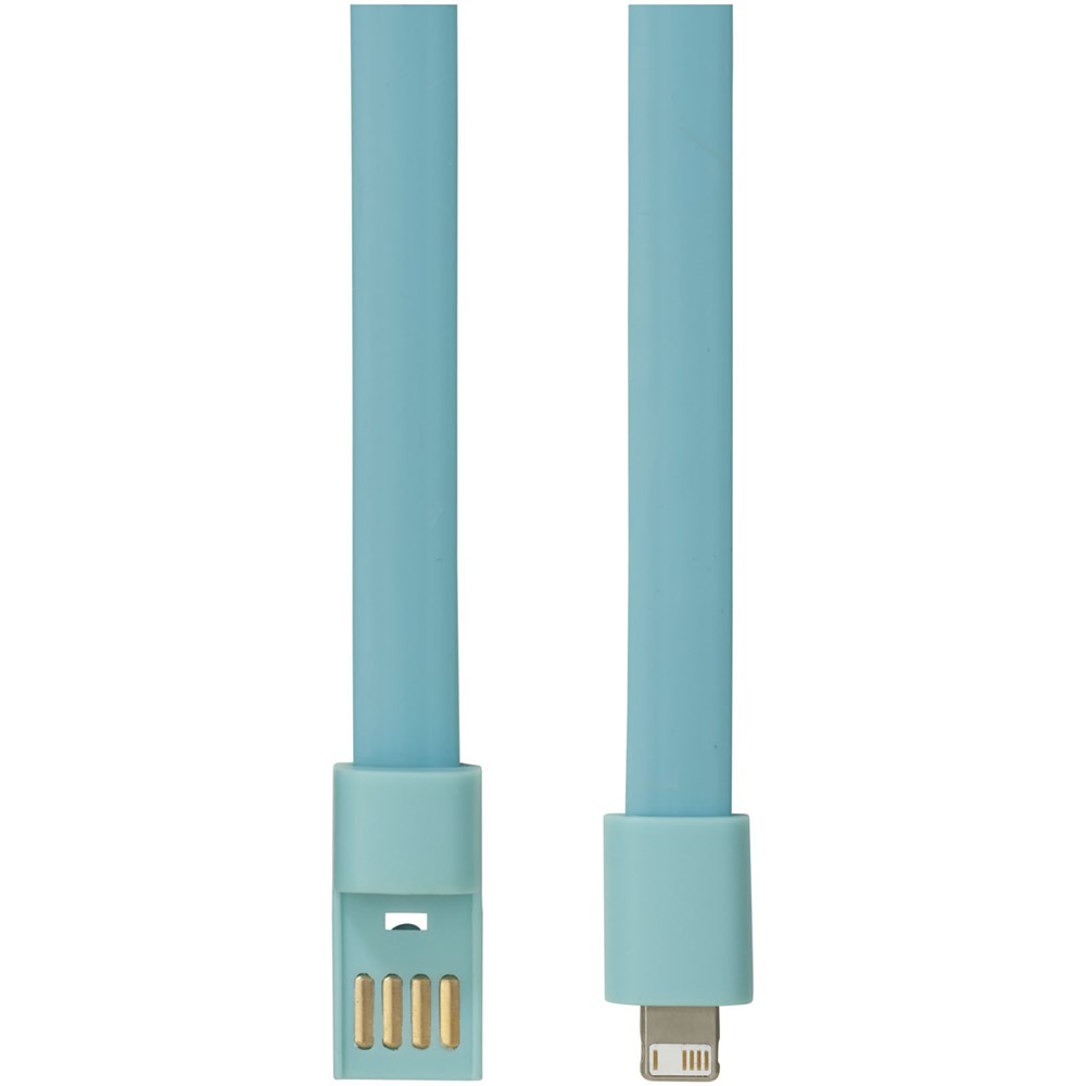 Dieses 2-in-1-Ladekabel verfügt über einen USB-A- und einen mit iOS- und Android-Geräten kompatiblen 2-in-1-Anschluss. Die beiden Enden können zusammengesteckt werden, wodurch der Artikel auch als Armband getragen werden kann. Auf der flachen Seite können Logos aufgebracht werden. Kann nur zum Laden verwendet werden.