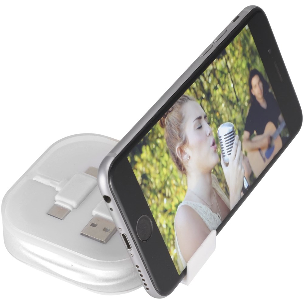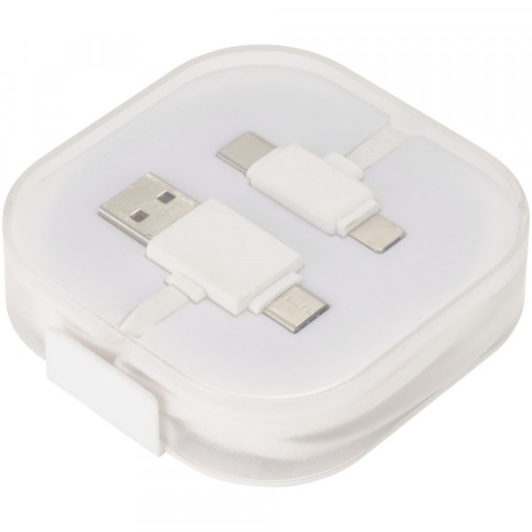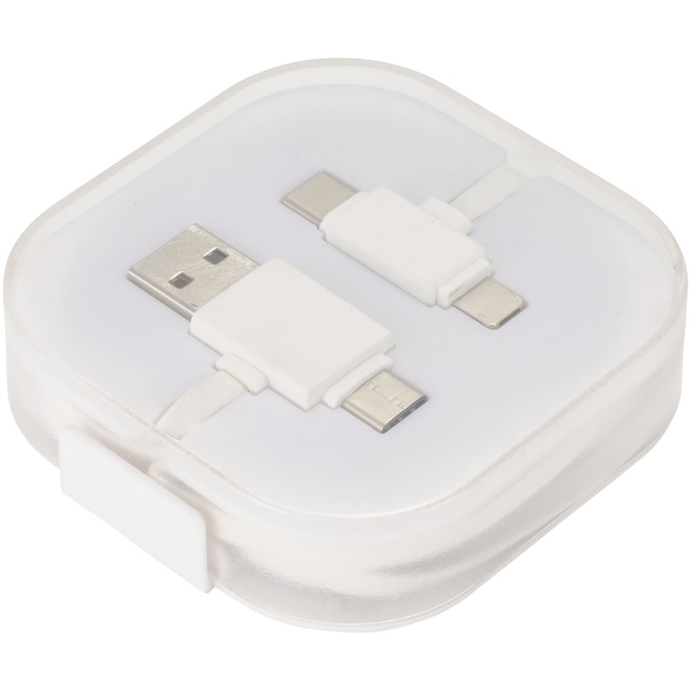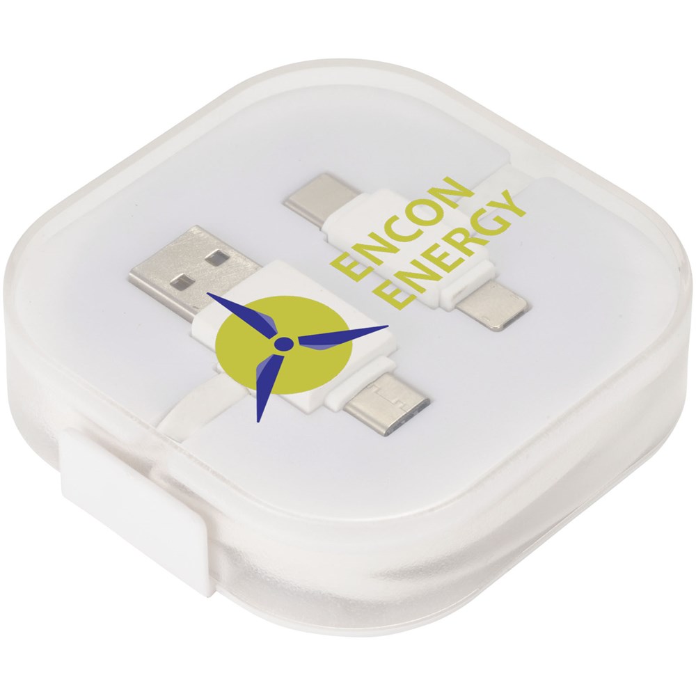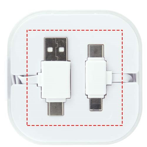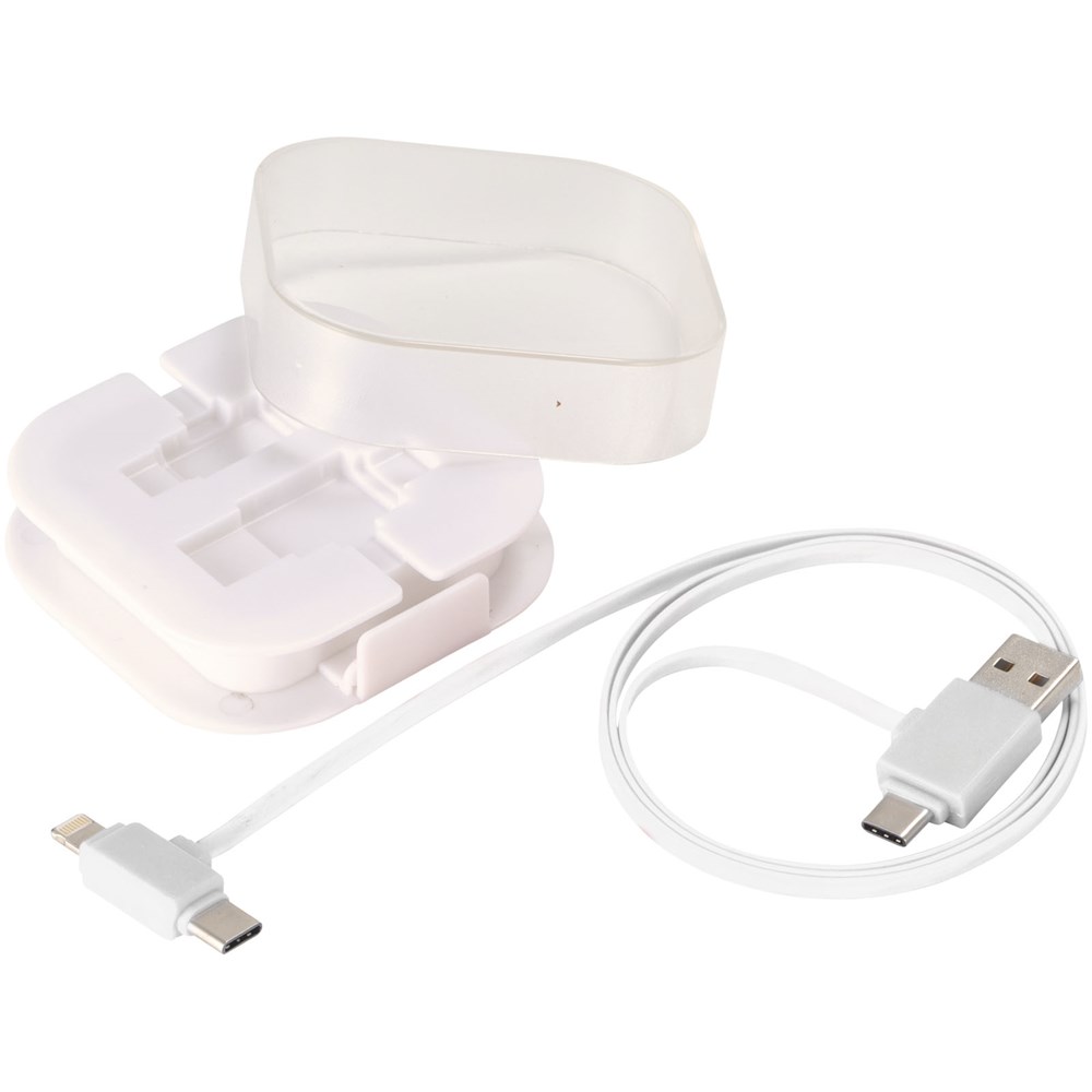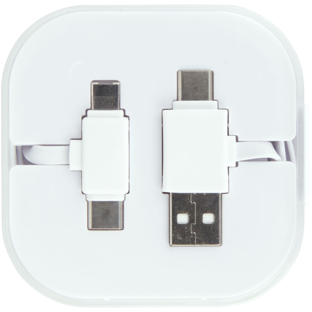 Das 4-in-1-Ladekabel in einer Hülle hat zwei Typ C, einen USB-Typ A und einen 2-in-1-Dual-kompatibelen Anschluss für Apple iOS und Android Geräte. Sowohl Ladefunktion als auch Datentransfer. Um Apple Geräte zu laden, nutzen Sie das Kabel mit der Seite, das keine Pins hat. Zum Laden von Android Geräten das Kabel mit der Seite nutzen, dass Pins hat.