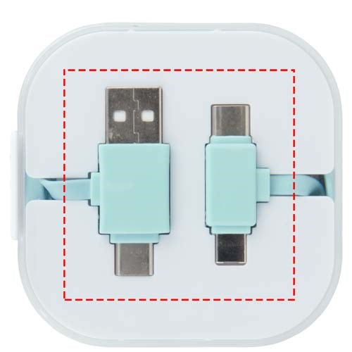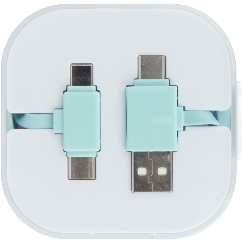 Das 4-in-1-Ladekabel in einer Hülle hat zwei Typ C, einen USB-Typ A und einen 2-in-1-Dual-kompatibelen Anschluss für Apple iOS und Android Geräte. Sowohl Ladefunktion als auch Datentransfer. Um Apple Geräte zu laden, nutzen Sie das Kabel mit der Seite, das keine Pins hat. Zum Laden von Android Geräten das Kabel mit der Seite nutzen, dass Pins hat.
