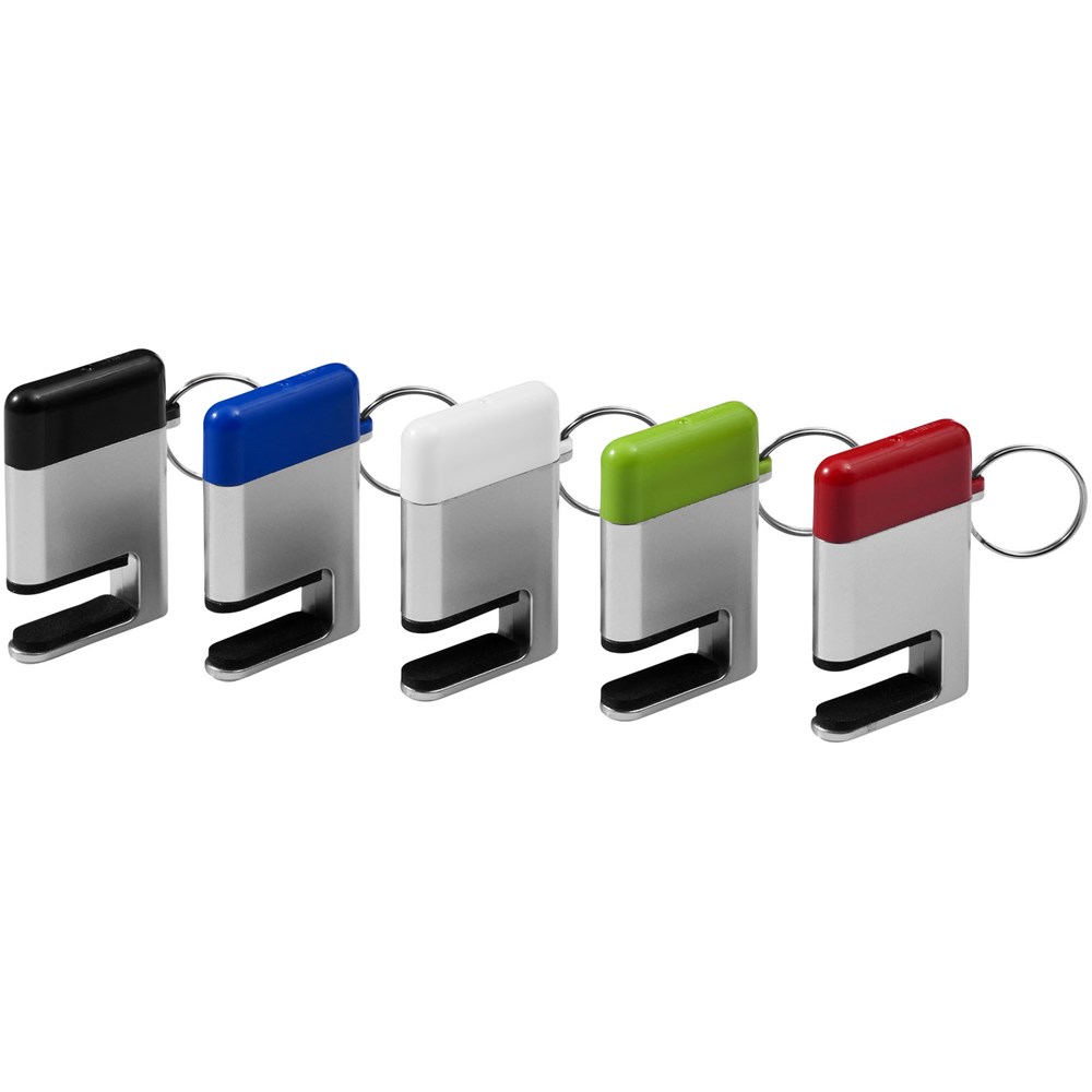 Handyhalter mit Schlüsselring und Bildschirmreiniger zum Abwischen des Bildschirms unter der farbigen Kappe.