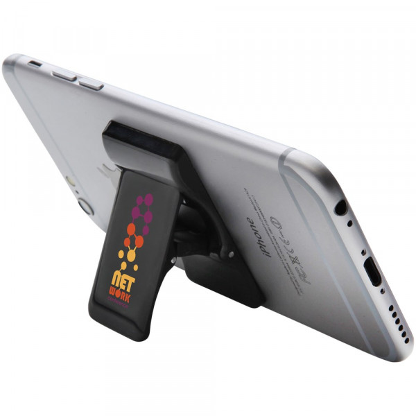 Mit diesem Telefonständer können Sie Ihr Smartphone auf komfortable Weise zum Ansehen von Filmen oder Freisprechanrufen aufstellen. Die klebende Rückseite haftet fest auf der Rückseite eines Smartphones. Kann auch für zusätzlichen Halt beim Tippen oder mit einem Stift verwendet werden.
