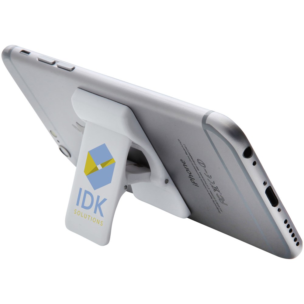 Mit diesem Telefonständer können Sie Ihr Smartphone auf komfortable Weise zum Ansehen von Filmen oder Freisprechanrufen aufstellen. Die klebende Rückseite haftet fest auf der Rückseite eines Smartphones. Kann auch für zusätzlichen Halt beim Tippen oder mit einem Stift verwendet werden.