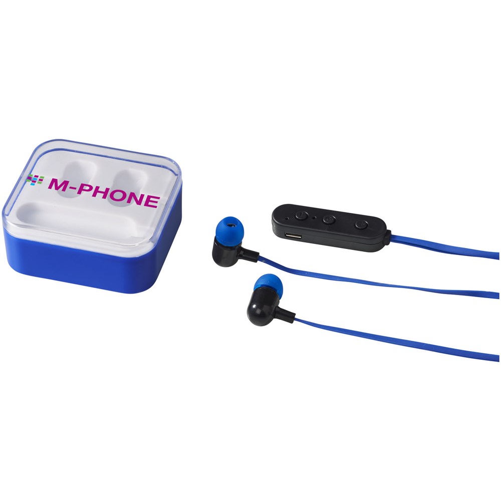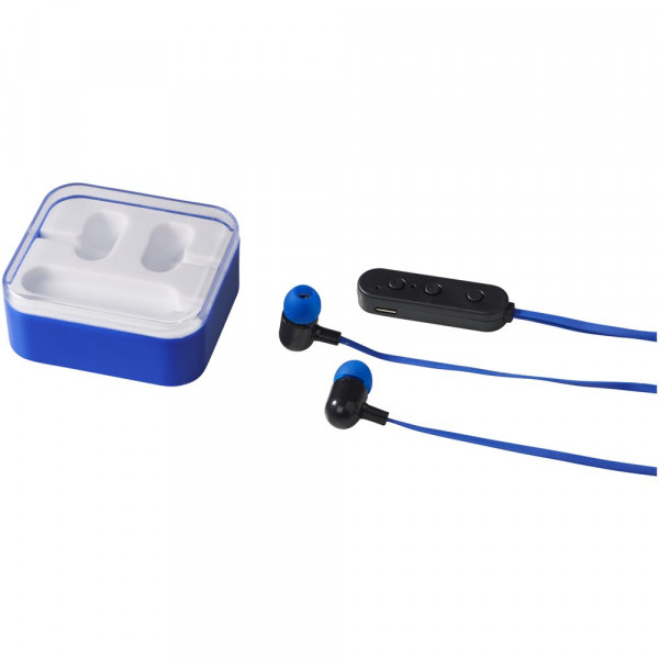 Leichte Bluetooth® Ohrhörer mit einer internen, wiederaufladbaren Batterie, die bis zu 2,5 Stunden Non-Stop Musik bei max. Lautstärke bietet. Die Ohrhörer verfügen über eine eingebaute Musiksteuerung und ein Mikrofon. Micro-USB Ladekabel enthalten. Lieferung in einem transparenten Gehäuse.