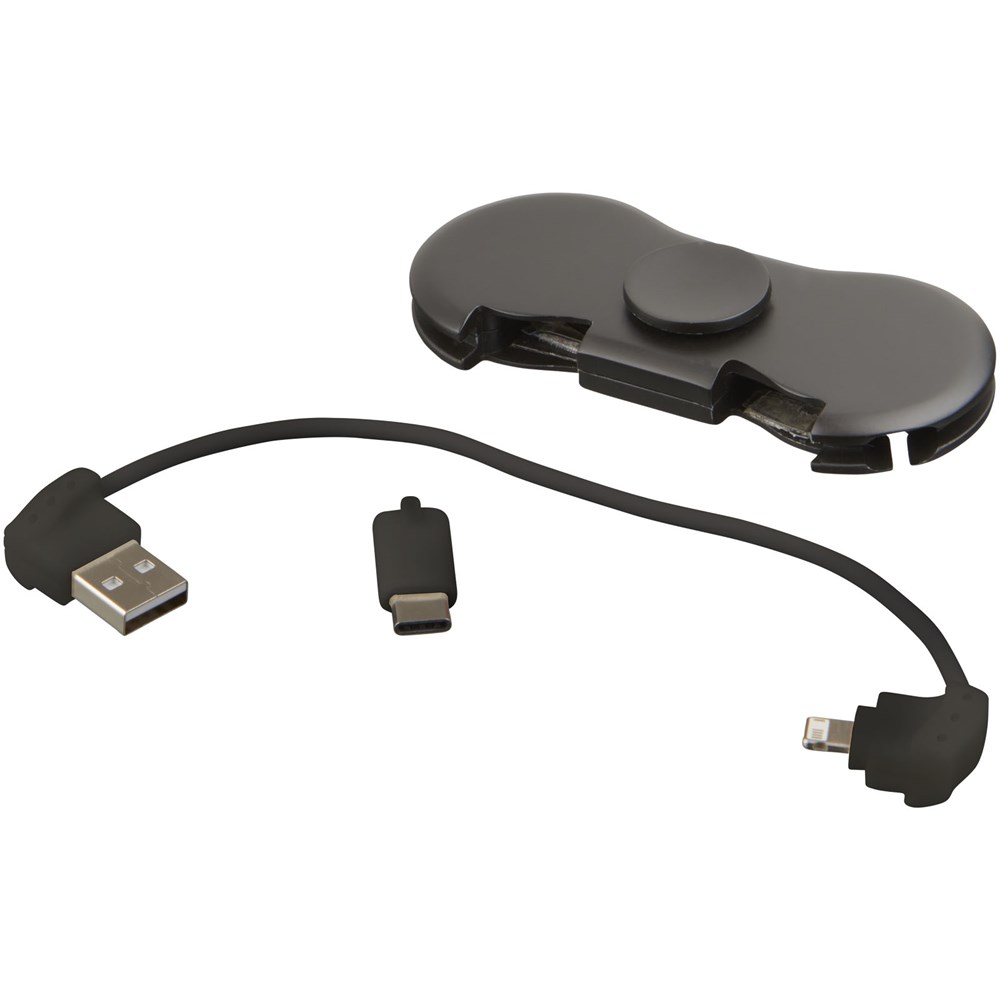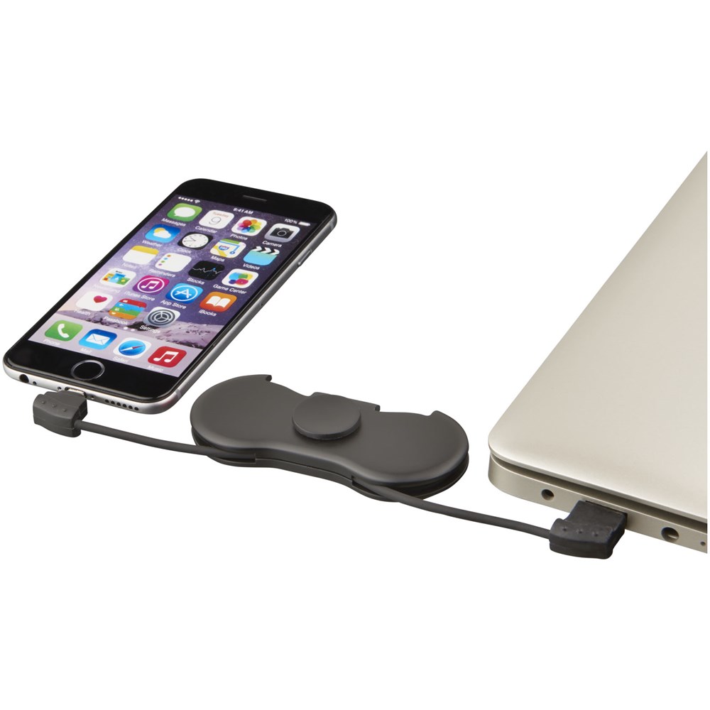 Perfekte Reisekombination, die das Spin-It Widget™ mit Ladefunktion kombiniert. Es enthält ein Ladekabel mit integriertem 2 in 1 Anschluss und Typ-C Anschluss im Slot. Spielen und Aufladen zur gleichen Zeit! CPSIA konform.