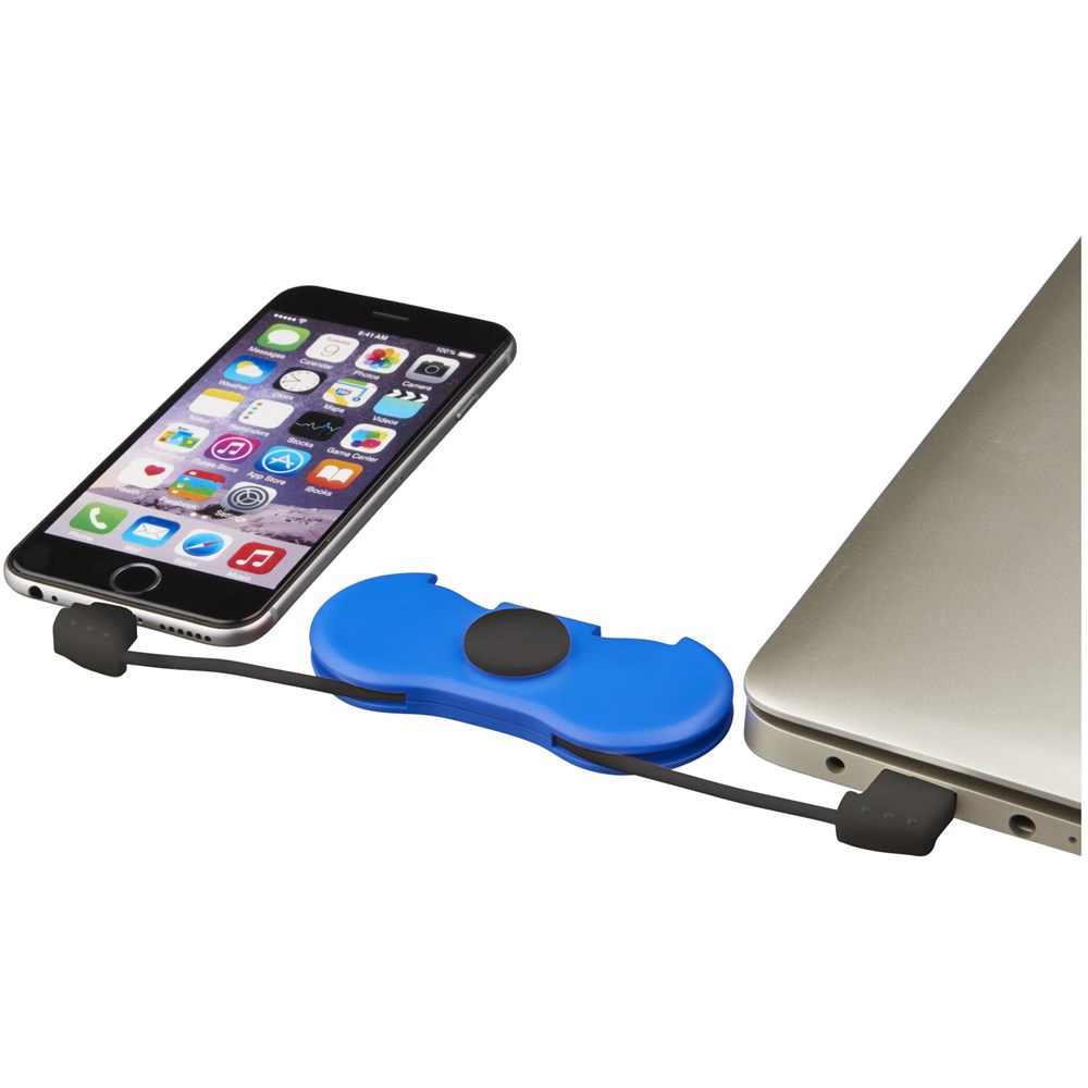 Perfekte Reisekombination, die das Spin-It Widget™ mit Ladefunktion kombiniert. Es enthält ein Ladekabel mit integriertem 2 in 1 Anschluss und Typ-C Anschluss im Slot. Spielen und Aufladen zur gleichen Zeit! CPSIA konform.