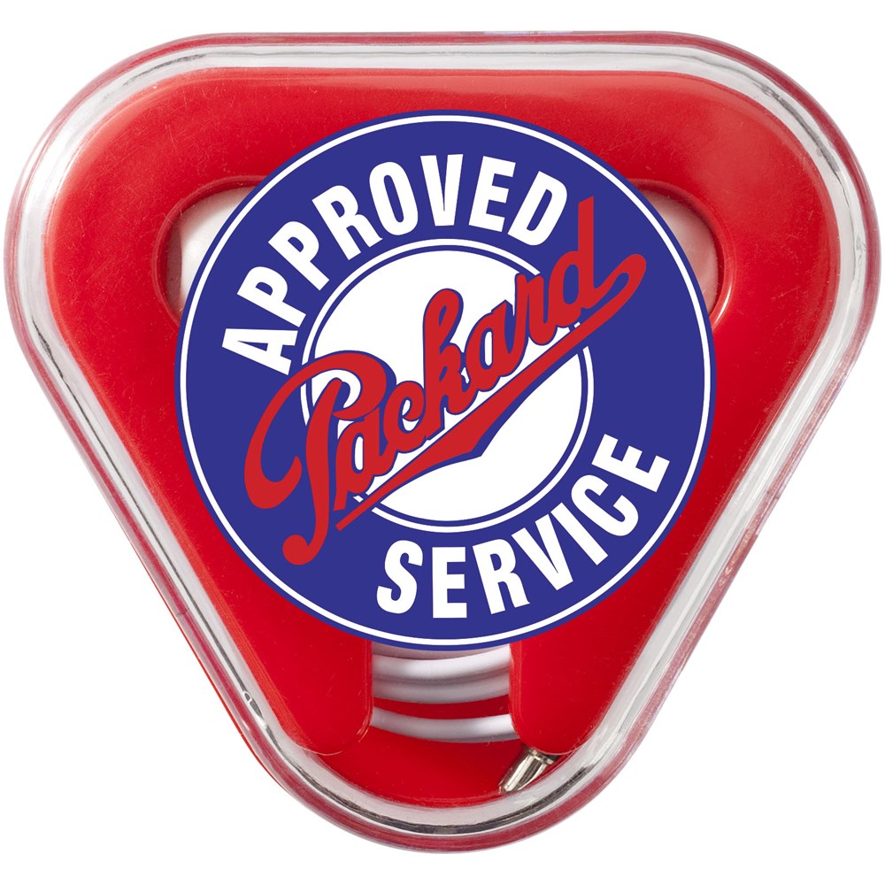 Dreieckiges Kunststoffetui mit Kabelaufbewahrung. Kann mit jedem Standard-Audiogerät mit einem 3,5 mm Audioeingang verwendet werden.