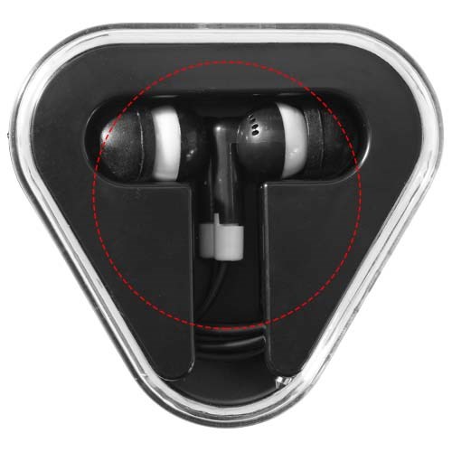Dreieckiges Kunststoffetui mit Kabelaufbewahrung. Kann mit jedem Standard-Audiogerät mit einem 3,5 mm Audioeingang verwendet werden.