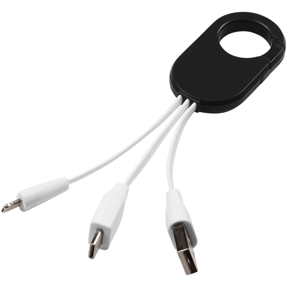 Das Troop 3-in-1-Ladekabel verfügt über einen USB Typ C-Stecker und einen doppelt kompatiblen 2-in-1-Stecker für Apple® iOS- und Android-Geräte. Es hat einen Karabinerhaken zum problemlosen Anbringen an Ihrer Tasche.