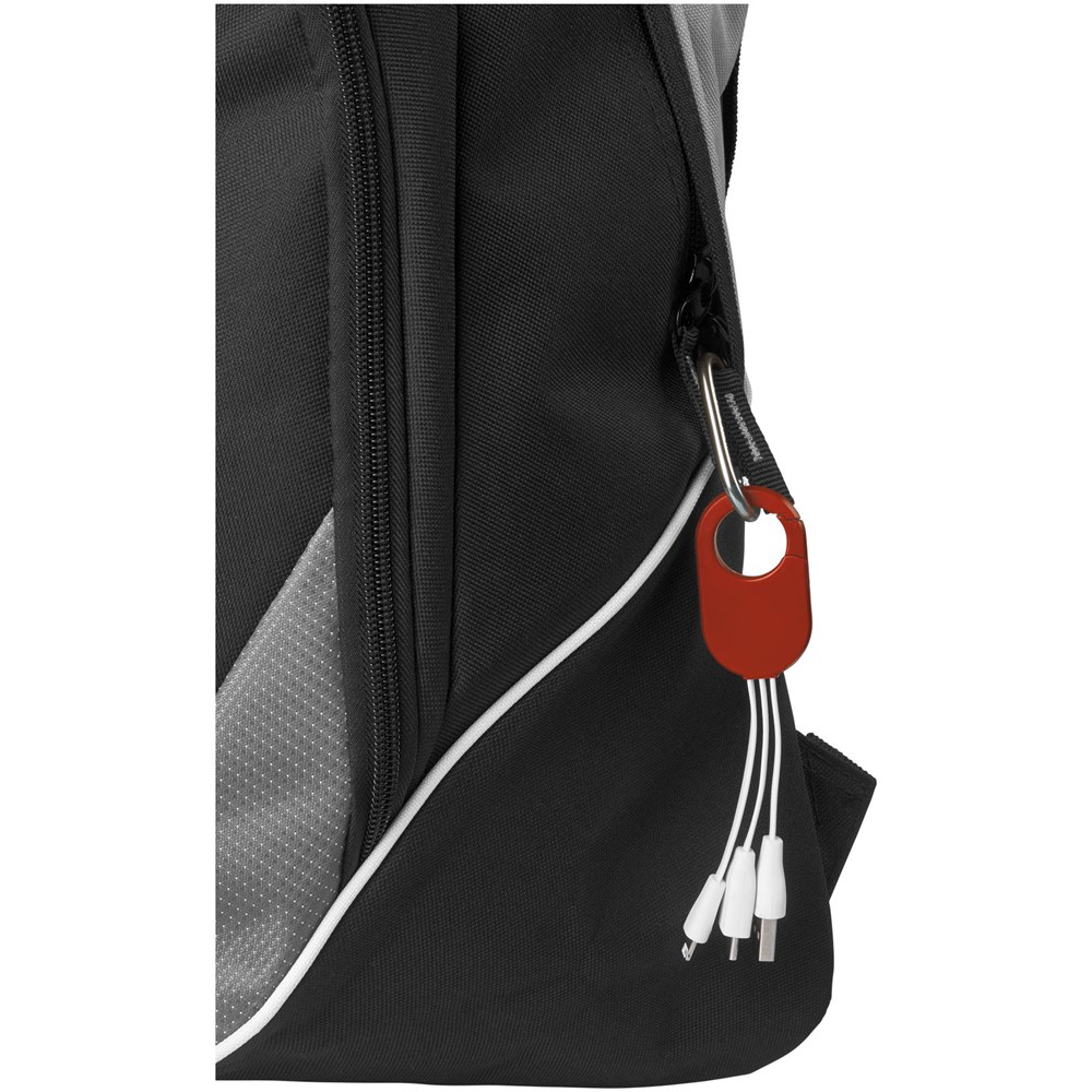 Das Troop 3-in-1-Ladekabel verfügt über einen USB Typ C-Stecker und einen doppelt kompatiblen 2-in-1-Stecker für Apple® iOS- und Android-Geräte. Es hat einen Karabinerhaken zum problemlosen Anbringen an Ihrer Tasche.