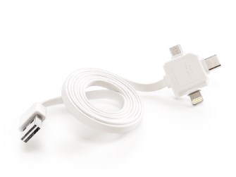 Alles was Sie brauchen, um Geräte mit verschiedenen Steckerverbindungen (USB Typ-C/ Apple® Lightning/Mikro-USB) aufzuladen, ist das neue innovative Power USB-Kabel!