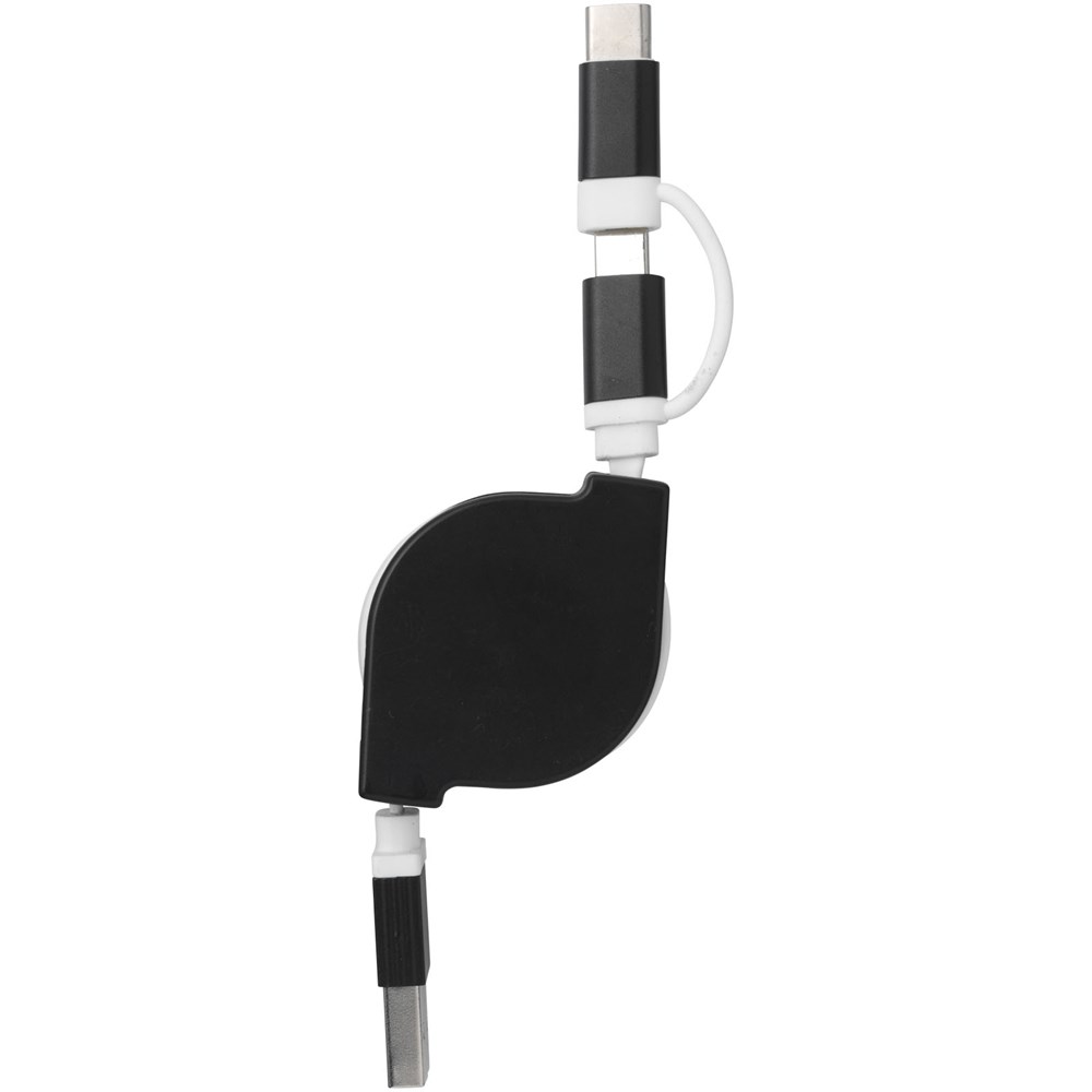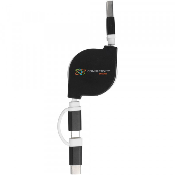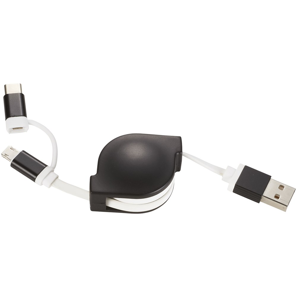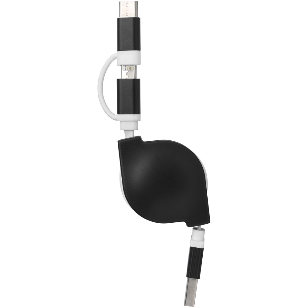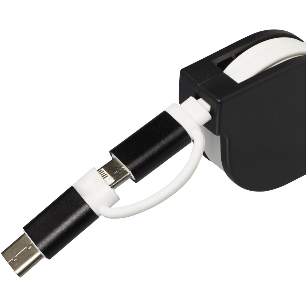 Dieses einziehbare 3 in 1 Ladekabel besteht aus einem USB-Typ C-Adapter und 2 in 1 Dual-kompatiblen Adapter für Apple iOS und Android-Geräte. Alle Adapter unterstützen die Aufladung und die Datenübertragung.