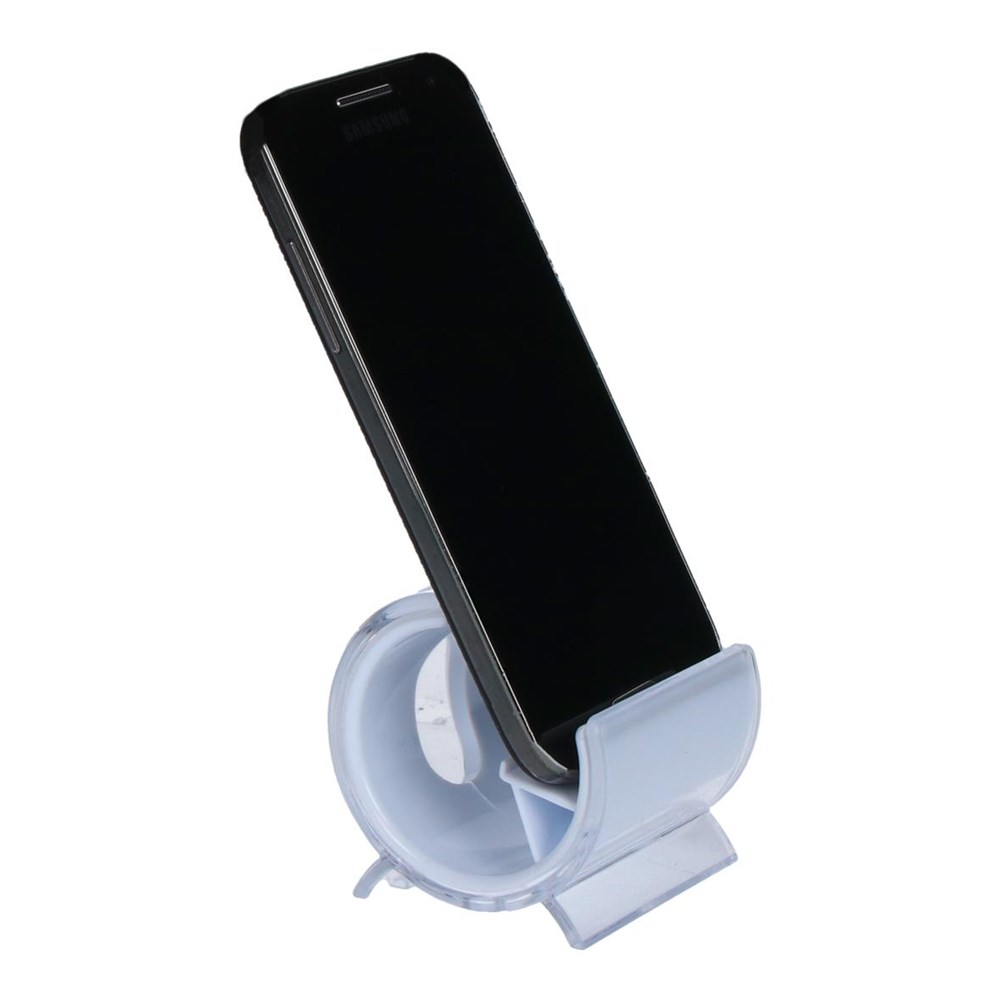 Schickes Teil. Design-Handyhalter aus Kunststoff mit Standfuß und Loch an der Rückseite zum Durchführen eines Ladekabels. Die Werbefläche ist optimal platziert, da sie sich immer im Blickfeld des Nutzers befindet.