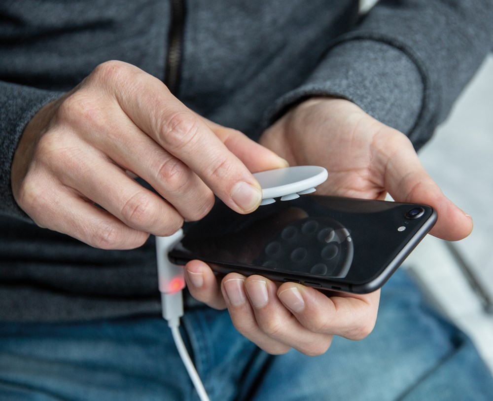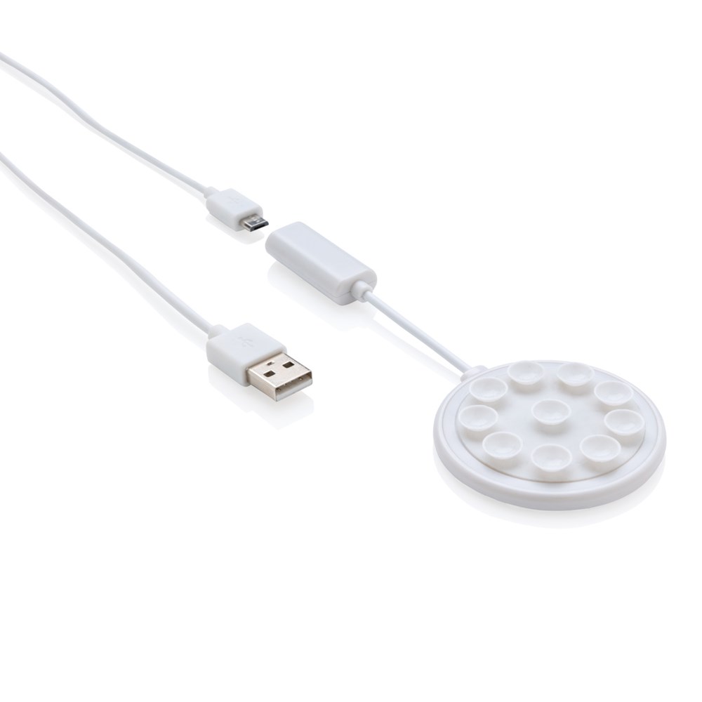 Beim nächsten Serienmarathon geht Ihnen nicht mehr der Saft aus - ob in der Bahn, zu Hause, oder als Beifahrer im Auto. Dieser 5W Wireless-Charger ist mit Saugnäpfen versehen um ihn an Ihrem Smartphone zu befestigen. Inkl. 120cm Micro-USB Kabel für die Stromversorgung. Aus ABS Material. Kompatibel mit allen QI-fähigen Geräten. Input: 5V/1.5A. Wireless Output: 5V/1A, 5W.