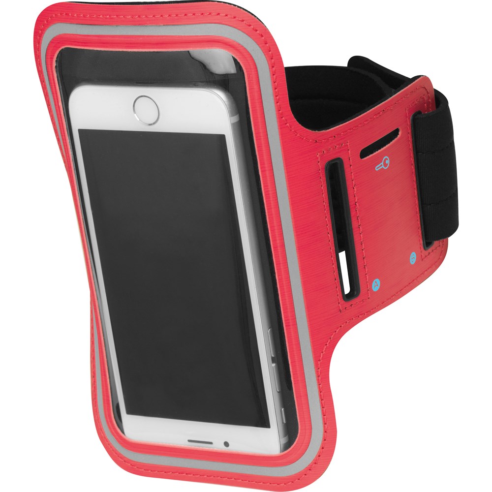 Handytasche für den Oberarm - ideal zum Joggen. Das Armband lässt sich stufenlos einstellen und hat ein extra Fach für einen Schlüssel. Die Werbung wird auf die vordere Fläche des Armbands gedruckt.