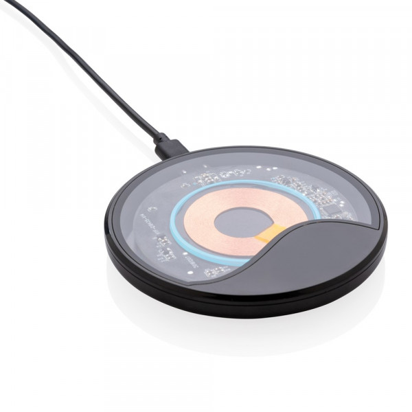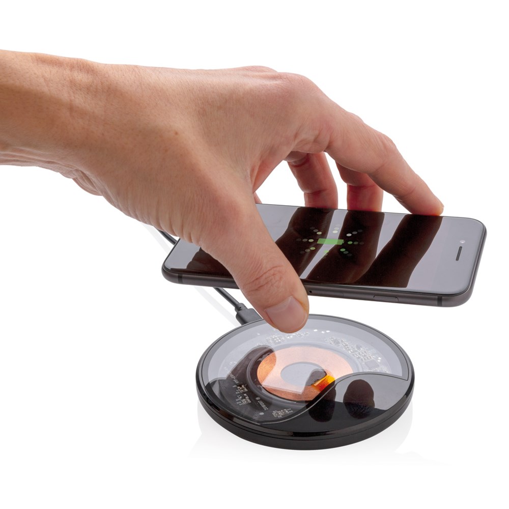 State-of-the-Art Wireless-Charger mit durchsichtigen Elementen um einen Blick auf die Klasse-A-Komponenten wie z.B. die Ladespule zu werfen. Mit dem 10W-Charging-Pad können Sie Ihr QI-fähiges Smartphone fast doppelt so schnell laden wie mit herkömmlichen Charging-Pads. Input: 5V/2A, Wireless-Output: 9V/1.1A 10W. Inkl. 150cm USB zu Type-C Kabel. Registered design®