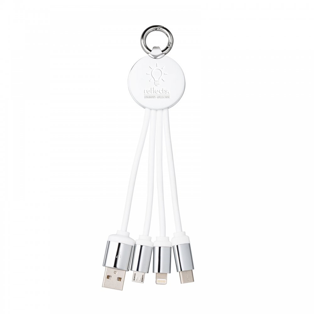 Das Multi-Ladekabel mit 6-Pin-Kabel für Geräte von Apple®, Micro USB und USB-C. Der per Laserdruck veredelte Bereich Ihres Logos wird je nach Modell blau, rot, grün, weiß oder mit Wechsellicht hinterleuchtet und wirkt so besonders apart. Apple® is a registered trademark of Apple Inc. registered in the US and other countries.