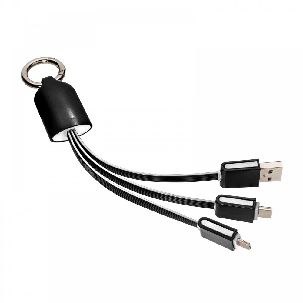 Ein Multi-Ladekabel mit 5-pin-Anschluss für Geräte von Apple®, Micro-USB und USB-C-Anschluss. Der Ausschnitt im per Laserdruck veredelten Areal Ihres Slogans oder Logos wird je nach Modell rot, blau oder weiß hinterleuchtet. Apple® is a registered trademark of Apple Inc., registered in the US and other countries.