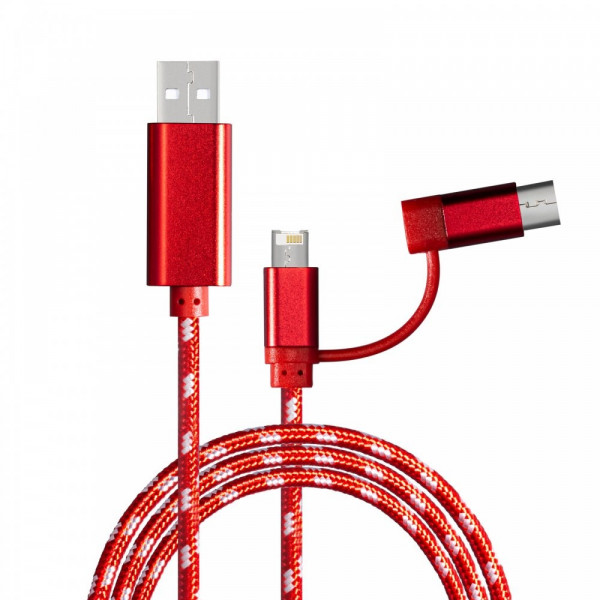 Kunststoff, Metall, Polyester, rot, weiß, 5 pin für Apple, micro USB, Polybeutel, USB 2.0, USB Typ C
