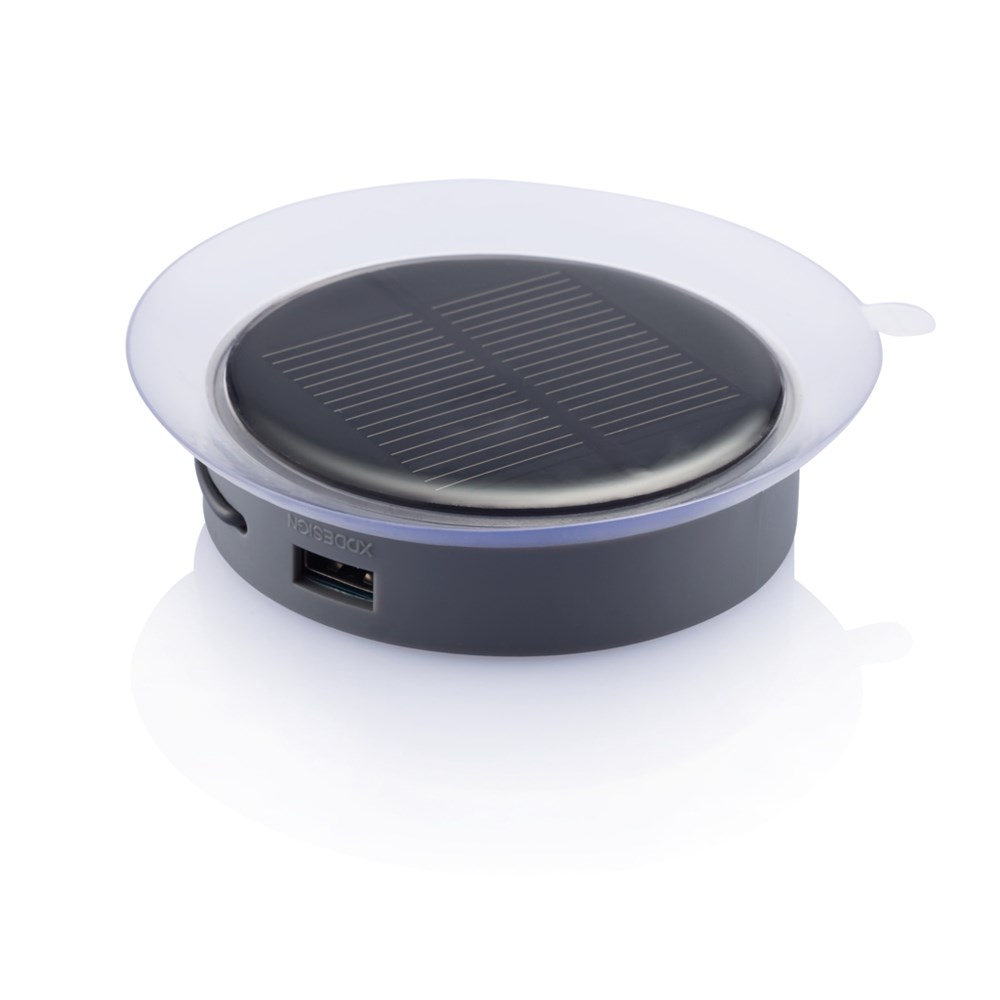 Das ideale mobile Solarladegerät mit integriertem USB-Port. Mit Hilfe des Saugnapfs kann der Solarcharger an jedes Fenster angebracht werden egal ob zu Hause, im Auto oder im Flugzeug. Die eingebaute wiederaufladbare Lithiumbatterie mit 1000mAh speichert die Sonnenenergie und nimmt sie mit wo immer Sie hingehen. Geschütztes Design®