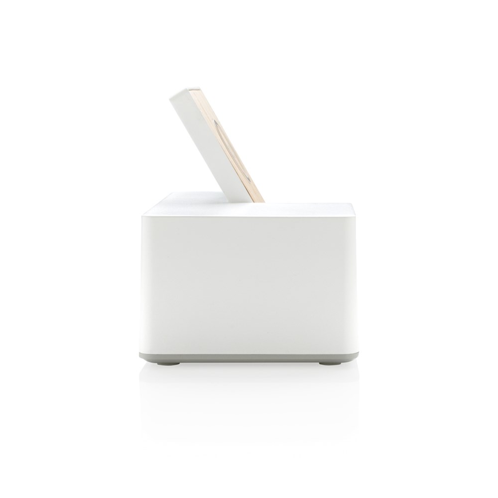 Geben Sie Ihrem Schreibtisch ein Udpate mit diesem praktischen und bequemen Wireless-Charger mit Lautsprecher aus ABS und Bambus. Der Wireless-Charger ist mit 5W ausgestattet und verfügt über zwei extra USB Ports. 150 cm langes Micro-USB Kabel im Lieferumfang enthalten um das Ladegerät an einer Stromquelle anzuschliessen. Der 3W Lautsprecher verfügt über eine BT 4.1 Verbindung mit einer Reichweite von bis zu 10 Metern. Beim zeitgleichen Gebrauch des Ladegeräts und des Lautsprechers, empfehlen wir den Artikel an der Stromquelle anzuschließen. Kompatibel mit allen QI Geräten wie z.B. Androids neuster Generation, iPhone 8 und höher. Registered design®