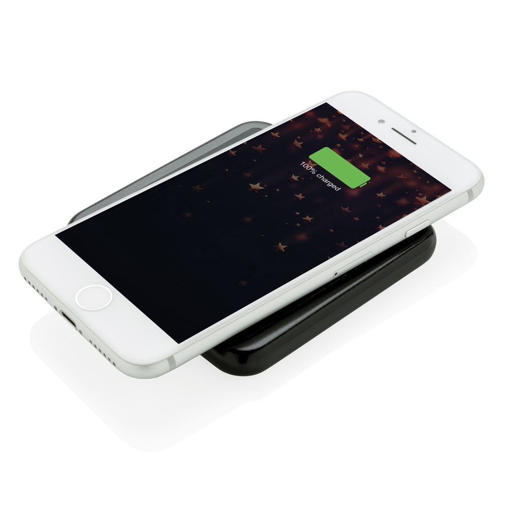 Laden Sie Ihre Geräte ohne sie mit einem Kabel zu verbinden. Platzieren Sie Ihr Smartphone einfach auf dem Charger und lassen es laden. Mit Ihrem Logo versehen erstrahlt dieses sogar, sobald ein Smartphone geladen wird. Kompatibel mit allen QI-fähigen Geräten wie den neuesten Android-Smartphones oder dem iPhone 8 und höher. Input: 5V/2A - Wireless Output: 5W.