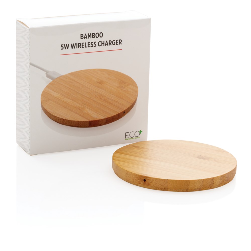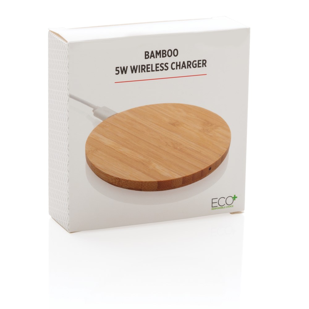 Laden Sie Ihr Smartphone ohne Kabelsalat mit diesem ECO 5W Wireless Charger. Einfach auflegen und schon wird geladen. Hergestellt aus Bambus und kompatibel mit allen QI-fähigen Geräten wie den Androids der neusten Generation und für iOS ab dem iPhone 8. Input: 5V/2A. Wireless Output: 5V/1A. Inkl. 150cm Micro-USB Kabel.